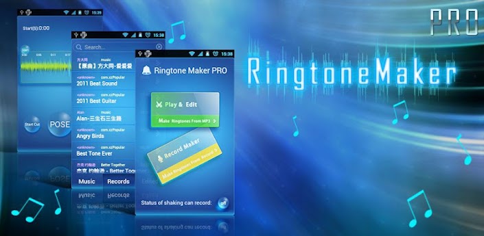 The Ring tone maker PRO create ringtones fast and easy from your own sound files, your own music or sound recordings. You can easily search through your ringtones and sound files and create new ringtones.