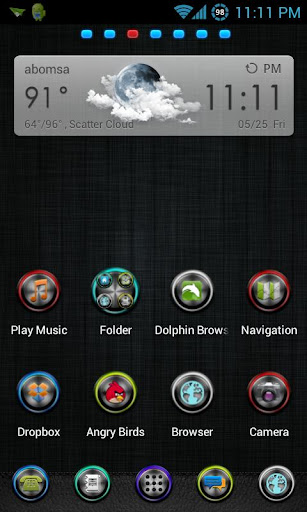 Overview: AMP Go Launcher Ex Theme takes many of its elements from the dashboard of an amplifier or equalizer, but adds a hint of glow and dash, includes a "leather" dockbar and app drawer, includes tons of uniquely colored icons.