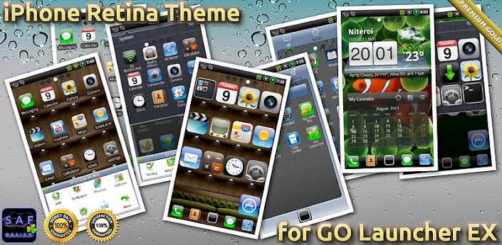 iPhone Retina with Big Icons theme will make your phone looks like the new iPhone. The retina icons are BIG and looks pretty on the screen. BIG ICONS ONLY WORKS WITH GO LAUNCHER EX 2.60 or BELLOW in full size (112x112 pixels). Or 85x85 in the newer versions of Go Launcher (2.70+), icons are not blurred when the icons are setup in "Large size".